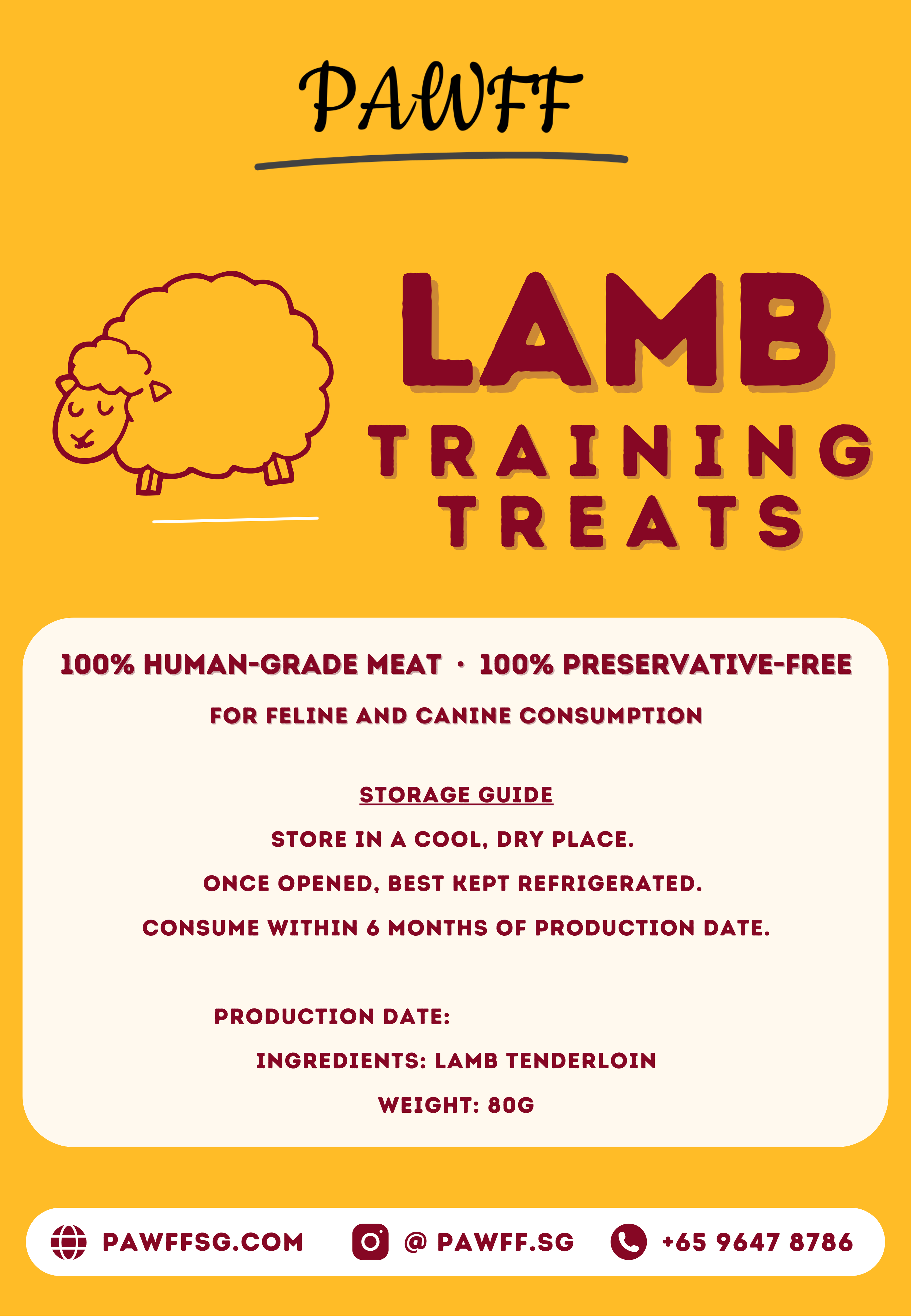 Each pack of PAWFF's Lamb Training Treat is packed in 80g.